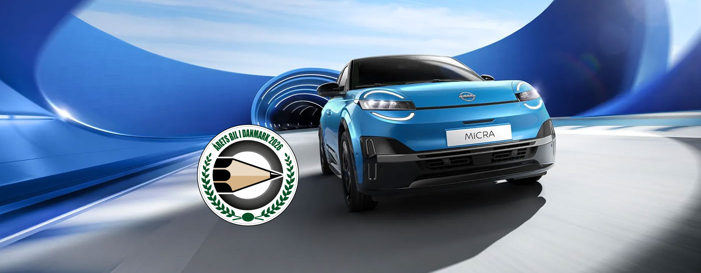 * Forbrug: Forbrug 142 Wh/km. Rækkevidde fra 316 km. Halvårlig CO₂ afgift 420 kr. Bilen er vist med ekstraudstyr. Opladningstid under optimale forhold 10-100%: 3 timer 40 min v. max ladeeffekt 11 kW; Hurtig-/lynopladning, 15%-80%: 30 min v. max ladeeffekt på 80 kW. Påvirkes bl.a. af kørestil, hastighed, vejrforhold, ekstraudstyr. *Nissan Financial Services. Udbetaling 29.995 kr. Periode 36 mdr., 10.000 km pr/år. Ekskl. forsikring. Samlet betaling 98.215 kr. kr. Betaling via BS. Tilbuddet gælder til og med 31.12.2025. Se mere på Nissan.dk.